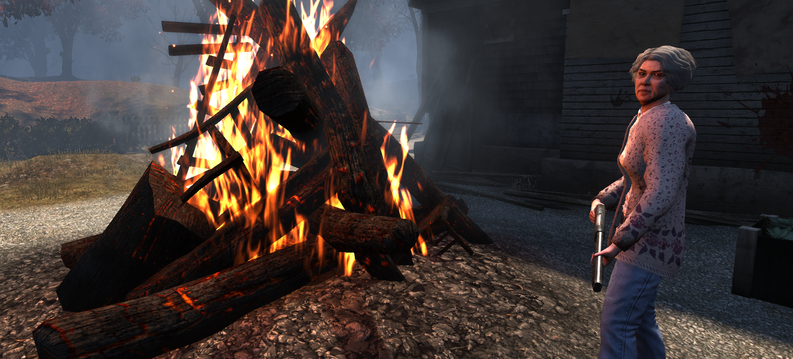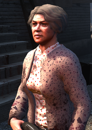The rest of her family has been killed by the events on Solomon Island, but she can be found in front of her house fending off zombies with her trusty shotgun and burning the bodies in the bonfire.